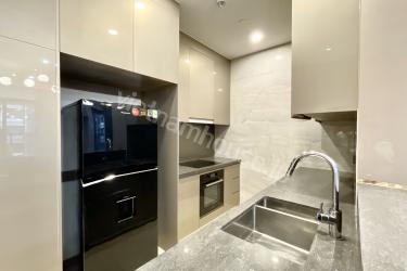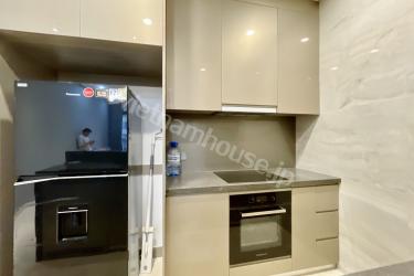 ミニマルなデザインとスマートな家電配置により、空間を最大限に活用した機能的な住環境を実現しました。上品なグレーと温かみのあるゴールドを基調とした色調が、親しみやすさと高級感を兼ね備えた心地よい空間を演出します。広々とした高級ソファを備えた居間には開放的なベランダがあり、心地よい風を感じながら静かな中庭の景色を愉しむことができます。機能的なキッチンや洗濯機に加え、ゆったりとした浴槽も完備されており、日々の疲れを癒やす設備が整っています。都会の中心にありながら、静寂と上質さを求める方に最適な隠れ家のような住まいです。
