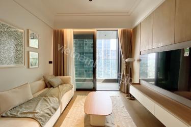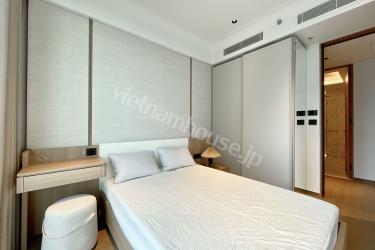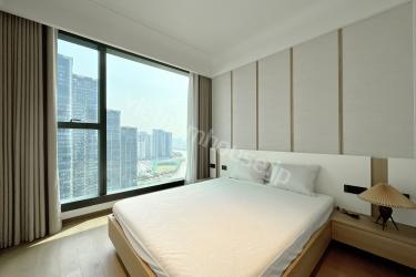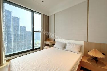 都会の華やかさと川の穏やかさが交差する、グランド・マリーナ・サイゴンの高層階住戸をご紹介します。モダンで温かみのあるトーンで統一された室内は、洗練された大人のための休息空間。開放的なオープンキッチンは清潔感のある白でまとめられ、リビングとの一体感が心地よい広さを演出します。大きな窓を備えたコンパクトな寝室には陽光がたっぷり差し込み、日々の疲れを優しく癒してくれます。室内洗濯機を含むフル装備の家具家電が揃っており、快適なアーバンライフをすぐにお始めいただけます。