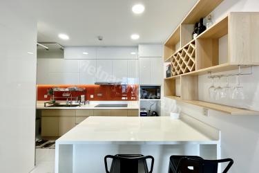白を基調としたモダンなデザインの室内は、明るく清潔感あふれる住空間となっています。最大の魅力は、サイゴン川とバソン橋を目の前に望むバルコニーで、夜景を眺めながら贅沢なリラックスタイムをお楽しみいただけます。リビングには大型の高級ソファを配し、ご家族でゆったりと過ごすのに最適です。ミニバーカウンター付きのオープンキッチンは、空間を有効活用できるだけでなく、ホームパーティーにも彩りを添えます。一日の終わりには、プライベートなバスタブで心身を癒やし、自宅にいながらリフレッシュできる至福のひとときをお過ごしください。