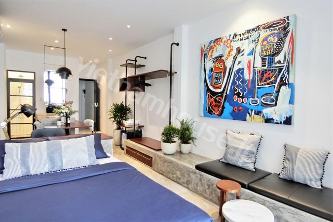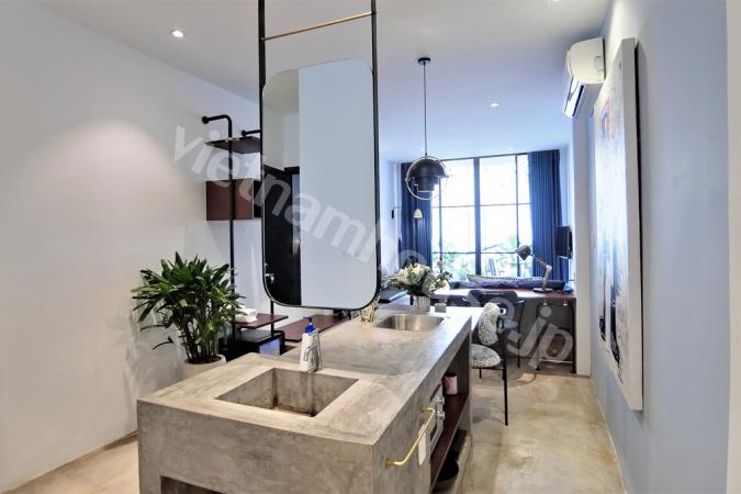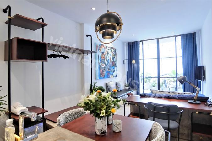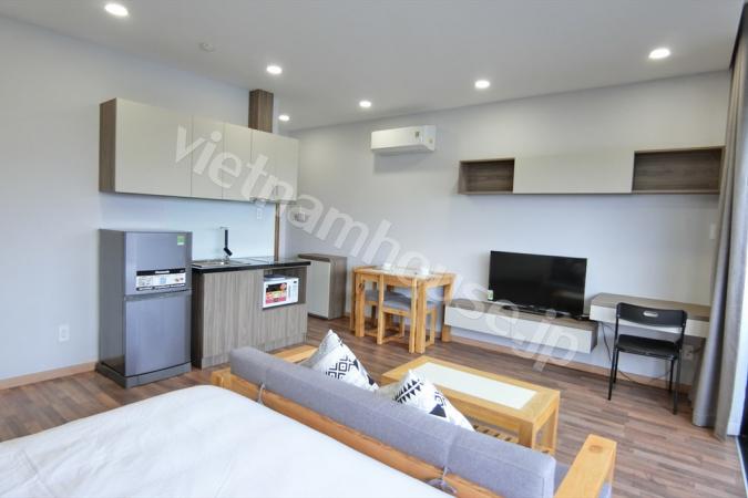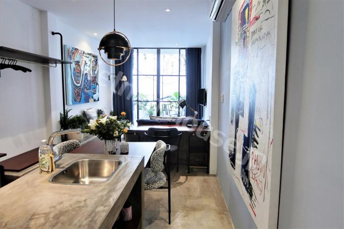 Western style in serviced apartment including cleaning, laundry, security 24/7, wifi in price. Apartment have open kitchen with dining table for 4 persons, warming bed next to airy balcony, wooden flo...
