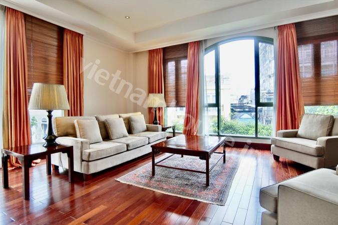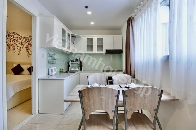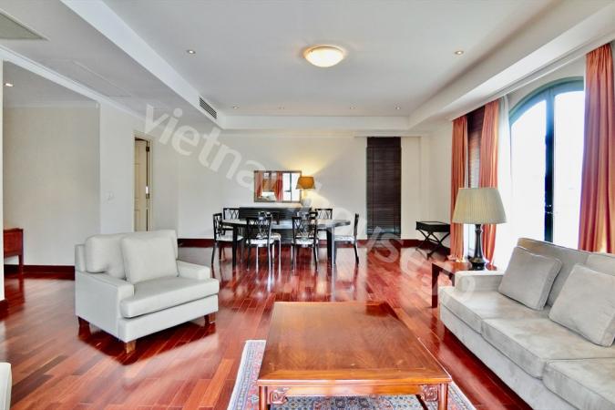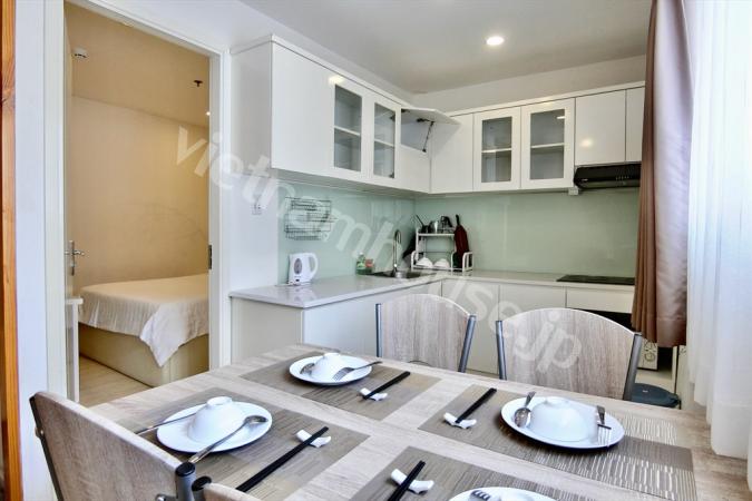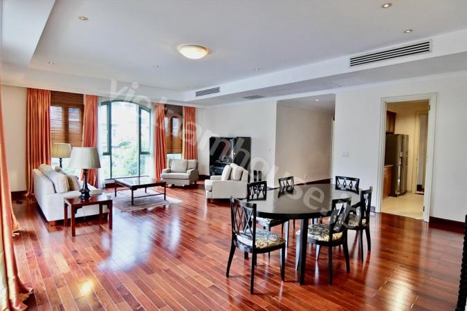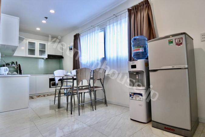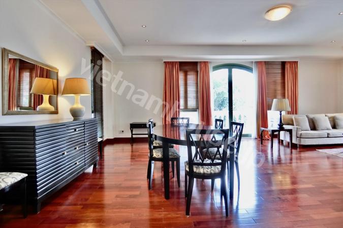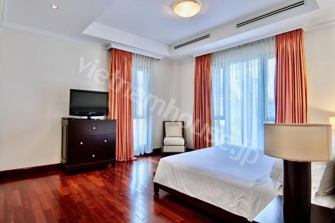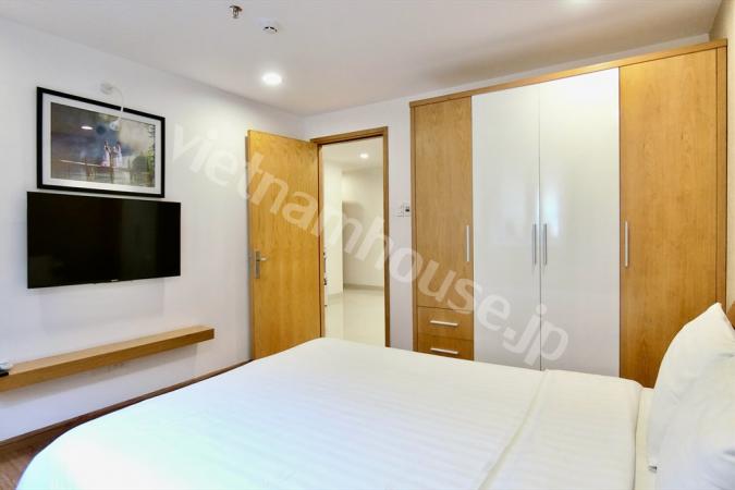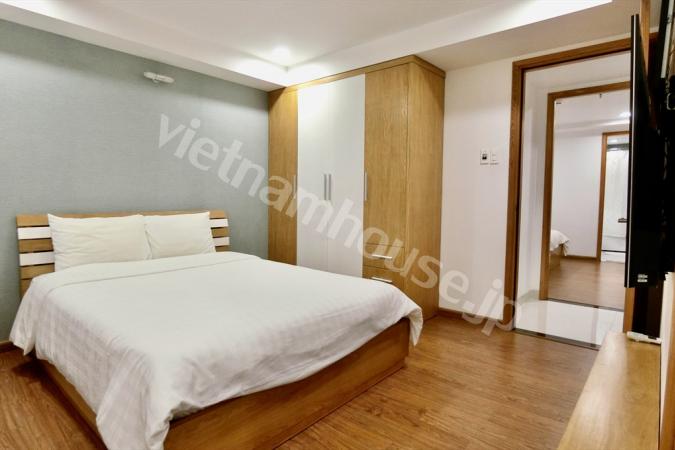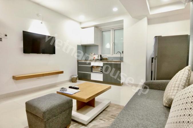 2区ハノイハイウェイ沿いのコンドミニアムMasteri Thao Dienの3ベッドルームのご紹介です。重厚感のある大型ソファにゆとりのあるキッチンの作業スペース。寝室内はフローリングになので暖かみを感じます。敷地内に...