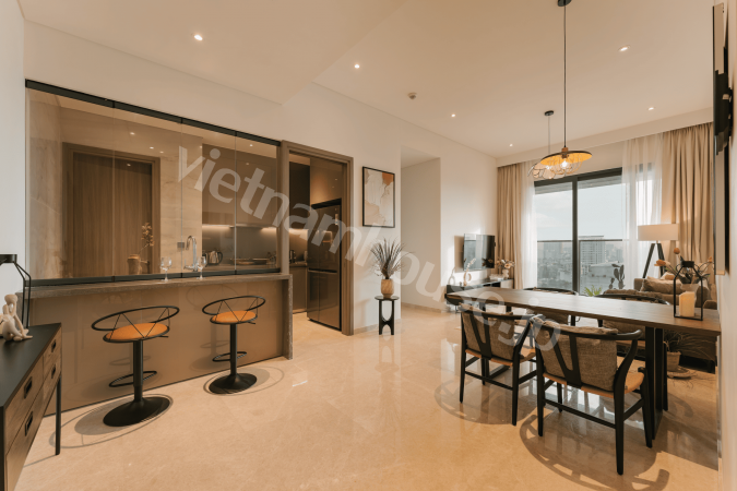 空港と中心地の間に位置する「The MarQ」塀に囲まれており、ゲートを入るとラグジュアリーな雰囲気が広がっています。A、Bの2つのタワーがあり、最上階のホーチミン全体を見渡すことができるプールでつながっています。通常コンパクトさも感じる1ベッドルームですが、スタディルームのようなスペースが確保されており、特別感がございます。また、2ベッドルーム以上には、洗い場のあるどこか品のあるバスタブが設置。全体が質の高い印象なのですが、ファミリーフレンドリーで最上階にあるキッズルームは大きな滑り台と、ボールプールがございます。1区に位置しながらも、スタディルーム、パーティールーム、ジム、サウナ、BBQスペースと、共有設備のご準備があり、全てが無料設備。ワンランク上の生活をご希望の方には是非一度ご覧いただきたい物件です。