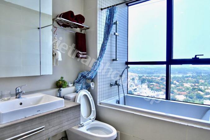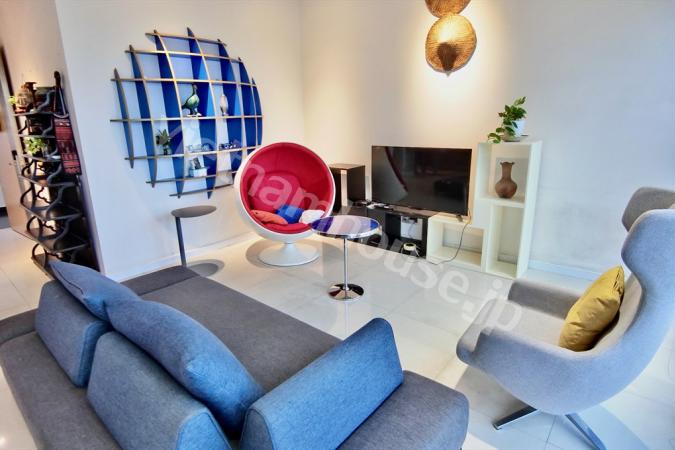 2区タオディエン(Thao Dien)エリアに建つタワーマンションになります。タオディエンエリアの入口から少し入った場所になり、タオディエン中心部までは徒歩15分ほど、車で3,4分の位置に有りタオディエンを傍目に見ながら満喫できる立地です。タオディエンエリアはご存知の通り欧米人の街でオシャレなレストランやカフェ、家具屋等の店舗が多いのんびりエリアです。高い建物は多くはなくVILLAが多いエリアですが、近年タワーマンションの開発も進んできています。バスタブ付きでシンプルなベース内装で人気のコンドミニアムになります。