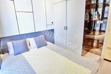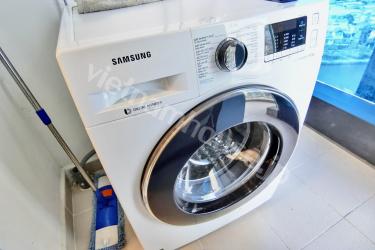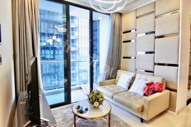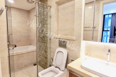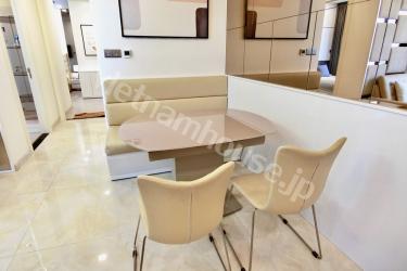 1区とビンタン区の境に位置する「Vinhomes Golden River」。ゴルフ好きが喜ぶヒムラムゴルフ練習場の近くでもあります(徒歩ではいけませんが…)。また第一の日本人街レタントンまで徒歩8分、第二の日本人街ファンビッチャンまで徒歩15分と日本食にも困りません。またホーチミン市内で一番のセキュリティーなので小さなお子様がいる家庭や女性にも安心です。Vinmart、Ministop、GS25、セブンイレブンとコンビニの種類も豊富です。こちらのお部屋は家具も電化製品も大きい。平米数は67m2しかありませんが壁をシンプルにすることにより、大きな家具と壁の関係が窮屈にならないため、逆に部屋が広々と見えます。ホーチミンでは少ない洗い場があるお風呂が魅力的です。