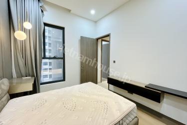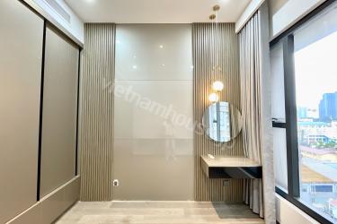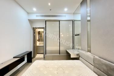 ミニマルなデザインとスマートな家電配置により、空間を最大限に活用した機能的な住環境を実現しました。上品なグレーと温かみのあるゴールドを基調とした色調が、親しみやすさと高級感を兼ね備えた心地よい空間を演出します。広々とした高級ソファを備えた居間には開放的なベランダがあり、心地よい風を感じながら静かな中庭の景色を愉しむことができます。機能的なキッチンや洗濯機に加え、ゆったりとした浴槽も完備されており、日々の疲れを癒やす設備が整っています。都会の中心にありながら、静寂と上質さを求める方に最適な隠れ家のような住まいです。