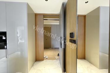 都会の華やかさと川の穏やかさが交差する、グランド・マリーナ・サイゴンの高層階住戸をご紹介します。モダンで温かみのあるトーンで統一された室内は、洗練された大人のための休息空間。開放的なオープンキッチンは清潔感のある白でまとめられ、リビングとの一体感が心地よい広さを演出します。大きな窓を備えたコンパクトな寝室には陽光がたっぷり差し込み、日々の疲れを優しく癒してくれます。室内洗濯機を含むフル装備の家具家電が揃っており、快適なアーバンライフをすぐにお始めいただけます。