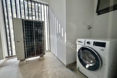 白を基調とした明るい色調のお部屋は、清潔感にあふれ、心安らぐ爽やかな空間を演出しています。居間と台所がつながった開放的な間取りは、空間を最大限に活用でき、ご家族の団らんの場をより広く、風通しの良いものにしています。各寝室も通風性に優れ、設備が充実しており、プライバシーと快適さを両立させました。洗練された高級感のあるインテリアに加え、広々とした洗濯・物干し場を備えており、日々の暮らしやすさも追求されています。現代的な生活水準と利便性を求めるご家族にとって、まさに理想的な住まいです。