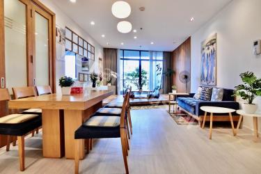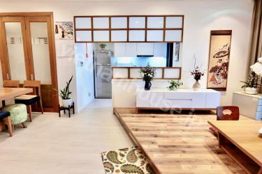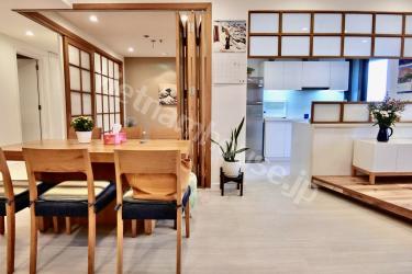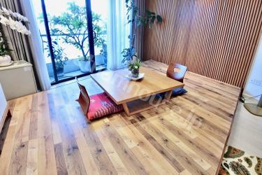 ビンタン区に位置する大人気コンドミニアムシティガーデン旧棟の和を感じられるモダンな2LDKのご紹介です。内装は掛け軸、格子壁、座椅子など細かい所に和のテイストを入れたモダンなお部屋。一段小上がりになったリビングから見える外の風景と観葉植物が何とも風情があり特徴的です。2つの寝室の内1つは大きく開口できるよう改装されていて、お子様のプレイルームや、お仕事用の書斎などにも使い易い仕様です。ベトナムに居ながら和を感じられる美しい空間です。是非お問合せをお待ちしております。