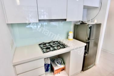 City Garden旧棟の良いお部屋です!白を基調としたお部屋ですがブルーのソファが外の木々、観葉植物とよく合う内装です。間取りは使いやすい1ベッドルームでアイランド型のキッチンも広々でよくお料理される方には嬉しいポイント!コスト抑えめでCity Gardenのお部屋をお探しの単身の方に是非オススメさせて頂きたい一室です!