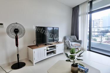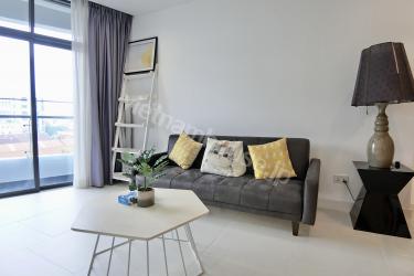 広めの1ベッドルームが人気のCityGardenのご紹介です。モノトーンの家具をベースに、少しナチュラルな雰囲気のあるものがプラスされていて、柔らかい印象も感じます。お問い合わせお待ちいたしております。