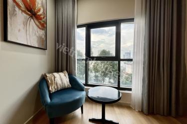 家具は収納機能を最大限に発揮するように配置されており、アパートメントは常に整理整頓されています。アパートには、風通しの良い小さなバルコニーがあり、敷地内の緑と開放的なシティビューを望めます。
