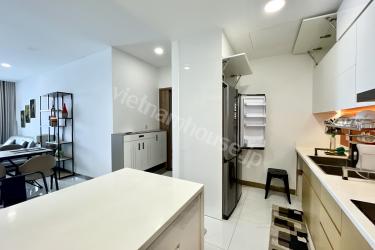 白を基調としたモダンなデザインの室内は、明るく清潔感あふれる住空間となっています。最大の魅力は、サイゴン川とバソン橋を目の前に望むバルコニーで、夜景を眺めながら贅沢なリラックスタイムをお楽しみいただけます。リビングには大型の高級ソファを配し、ご家族でゆったりと過ごすのに最適です。ミニバーカウンター付きのオープンキッチンは、空間を有効活用できるだけでなく、ホームパーティーにも彩りを添えます。一日の終わりには、プライベートなバスタブで心身を癒やし、自宅にいながらリフレッシュできる至福のひとときをお過ごしください。
