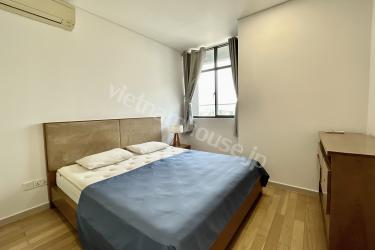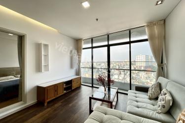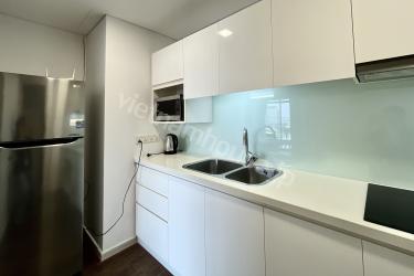 ビンタイン区の中心に位置するこの1LDKアパートメントは、芸術的にアレンジされた温かみのある木製インテリアが、住まいに新鮮な息吹をもたらします。最大の特徴は、リビングから寝室まで続くシームレスなガラス壁です。空間の仕切りをなくすことで、圧倒的な開放感を実現しました。床から天井まで続く大きな窓からは自然光がたっぷりと差し込み、高層階からの街全体のパノラマビューを楽しめます。細部にまでこだわり、開放感と品格を愛する方のための、洗練されたモダンな隠れ家です。