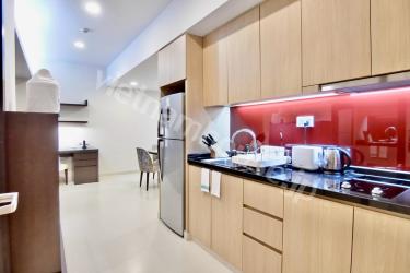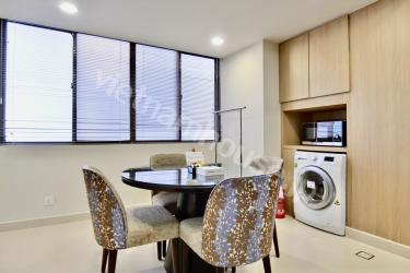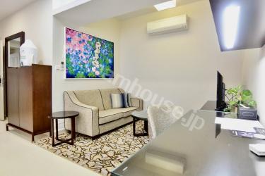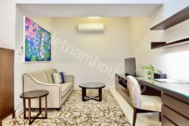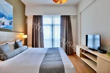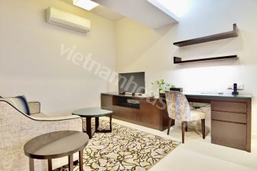 ホテルとしても兼用されている高級ホテルレジデンスの一室です。コンシェルジュがしっかりしているので何かあった時に心強く、セキュリティも安心の物件です。敷地内にはジム、プール、テニスコートが完備されています。またお部屋には洗濯乾燥機が付いているのでご自身でお洗濯いただくこともできます。是非一度ベトナムハウスまでお問い合わせくださいませ。