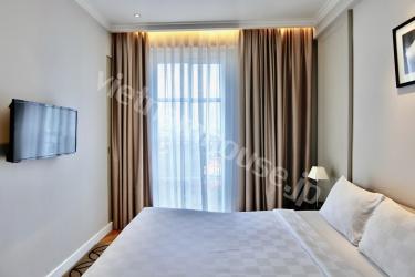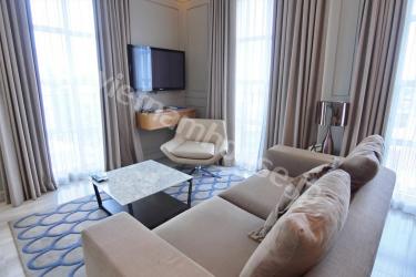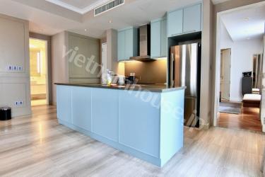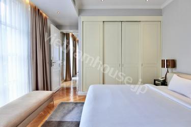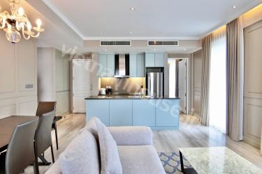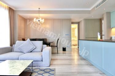 オシャレな2ベッドルーム85㎡の程よい大きさのサービスアパートです。近くにスーパーや日本食 屋もある便利な立地です。屋上にはジムも付いています。