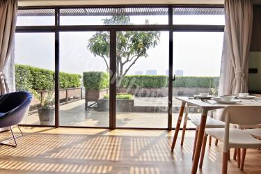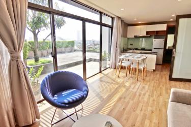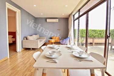 2区タオディエン立地のサービスアパートの特別なお部屋になります。1ベッドルームのペントハウス設定で、かなり広いベランダがついています。リビングキッチンも一面窓でかなり明るく、内装の雰囲気もとても良い良物件です。なかなか1ベッドルームのこの価格帯で特別感のあるお部屋は少ないのでかなりオススメのお部屋になります。