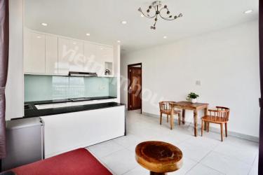 ビンタン区のサービスアパート1ベッドルームのご紹介です。周辺未だ少しローカル感の残るエリアですが中心地まで車で15〜20分程度です!内装は白基調に木材家具を配置したバランスの良いシンプルな内装。バルコニーからサイゴン川を見渡せる眺望は、このお部屋の最大の魅力といっても過言ではありません。単身であれば十分な広さがあり、賃料もお安め!お早めのお問い合わせをオススメ致します!!