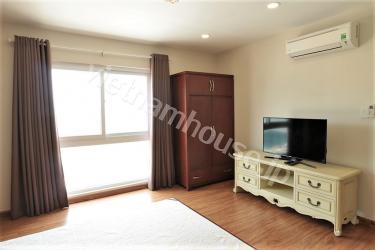 タンビン区、空港近くのサービスアパートの一室です。間取りは40㎡の広さの1ベッドルーム(1LDK)タイプです。ベトナムでは珍しいフローリングタイプで目が和みます。タンビン区で1ベッドルームのお部屋お探しの方にオススメしたい物件です。ご連絡お待ちしております。