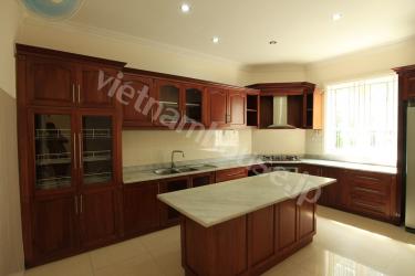 This tropical garden villa is surrounded by the refreshing greenery. The villa is located in quiet lane, near by supermarket, restaurants, shops and international schools, perfect location for any family. It also has a small garden and pool, which help you relax after hard working. Located in Thao Dien, District 2, so it is a good choice for you to enjoy fresh air and peaceful atmosphere.