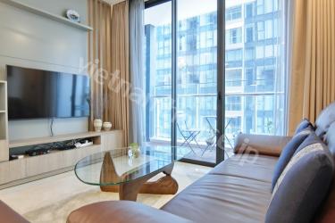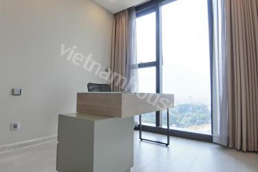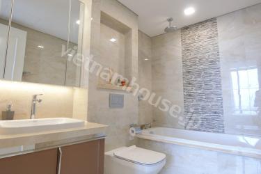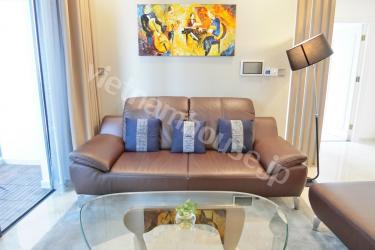The contemporary and relaxed styling of the well-appointed stone kitchen in Vinhomes Golden River looks over the family space to enjoy with family and friends and leads to a private balcony with Nhieu Loc canal view . The three bedrooms are truly a retreat in which to relax with a mix of built in robes and walk in robes. There are two exquisite bathrooms, one of which has nice bathtub. Contact us for more information.