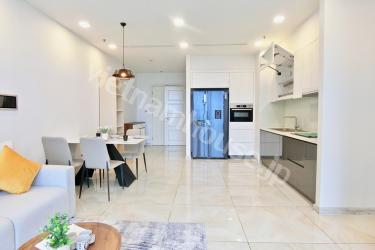 Do you think apartment in Vinhomes Golden River is a good choice for you? This apartment offers two bedrooms, a large living area, and an open kitchen. The house's furniture and equipment are entirely contemporary and high-tech. As a result, this location will provide you with a convenient and pleasant lifestyle. You may spend your time here cooking, eating beautiful meals with friends and family, and relaxing together. Contact us for more information.