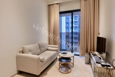 The apartment has a spacious and airy bedroom. The bedroom is equipped with a comfortable and quality bed, along with luxurious and comfortable blankets, pillows, and bed sheets. A large and comfortable wardrobe is provided, so you have enough space to store your clothes and personal belongings. The apartment's living room is designed to bring comfort and convenience to both family and guests. A soft and comfortable sofa set is arranged so you can relax and watch TV or read a book. A tea table and basket chairs are placed close together, creating the perfect space for you and your family or friends to enjoy conversations and relaxation. The apartment's kitchen is fully equipped with amenities. A small but convenient kitchen with an electric stove, microwave, and refrigerator means you can cook and store food easily. The dining table and chairs are placed close together, creating a feeling of closeness and convenience for family meals. The apartment's bathroom includes a bathtub or shower, sink, and toilet. Materials and equipment in the bathroom are carefully selected to create a clean and comfortable space. Overall, the fully furnished 1-bedroom apartment is an ideal place for you to live and rest. The apartment offers comfort and convenience, with all the amenities you need to relax and enjoy everyday life.