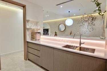 Located in the new urban area of Thu Thiem, this apartment belongs to the upscale condominium "The River". As shown in the photos, the interior is both cute and chic, perfect for those who enjoy living in a stylish and aesthetically pleasing space.