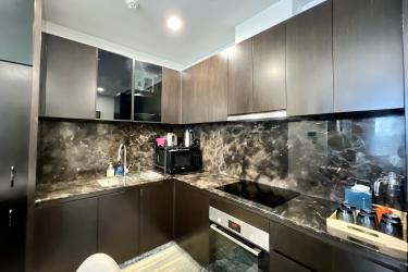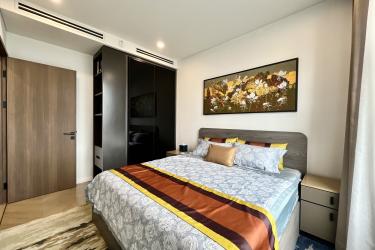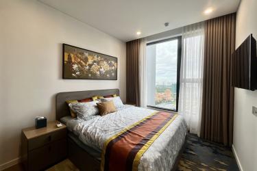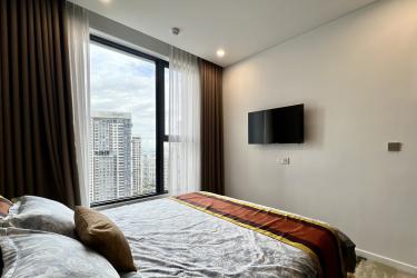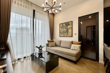 This spacious 1-bedroom apartment is designed in a modern style with elegant tones and premium furnishings, creating a refined yet cozy living space. The open layout seamlessly connects the living room and kitchen, providing an airy and convenient area for daily life. The bright bedroom welcomes natural sunlight and opens to a refreshing high-floor city view.