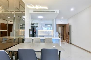 A modern open floor plan integrates a huge living and dining area with high ceilings and fantastic natural light, leading to a spacious balcony. The home offers first-class accommodations and maximizes its outlook. A stylish kitchen features stainless steel appliances, including an integrated refrigerator, and stone benches. Two luxurious bathrooms with a bathtub, a huge shower, and toilets serve three spacious bedrooms. Get in touch with us for further details.