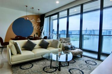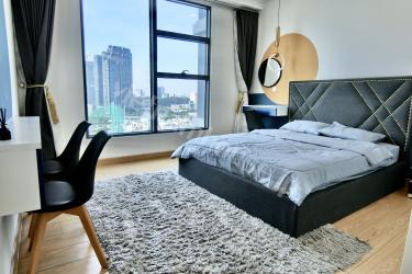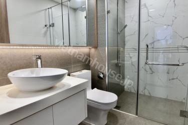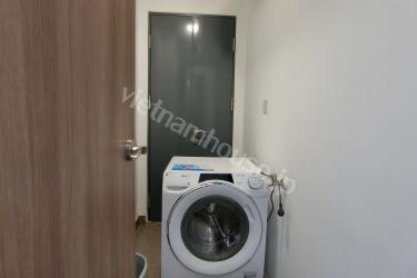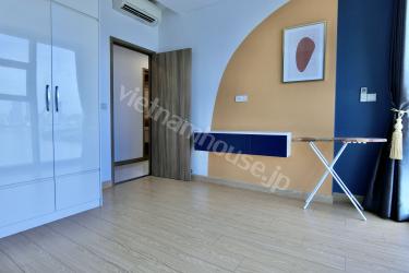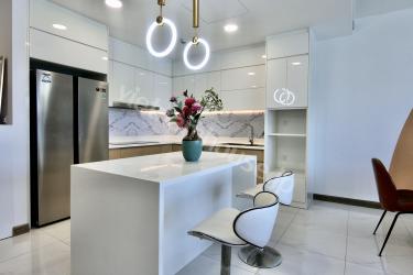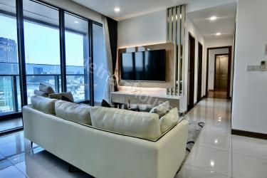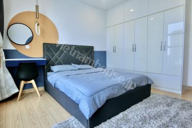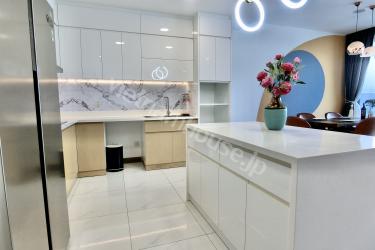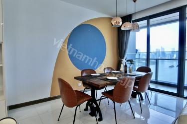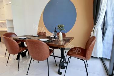 The two-bedroom apartment with a living room space filled with light from a large balcony is an airy and bright living space. The open balcony helps abundant natural light shine into the living room, creating a living space close to nature. The living room is spaciously designed with a large glass balcony taking up most of one wall. Natural light from the balcony shines into the living room creating a bright and airy feeling. You can watch the bustling streets below from this spacious balcony. The living room interior is arranged reasonably, making the most of natural light. With this design, you can enjoy a living space close to nature right in the living room. This is the ideal space for rest and entertainment