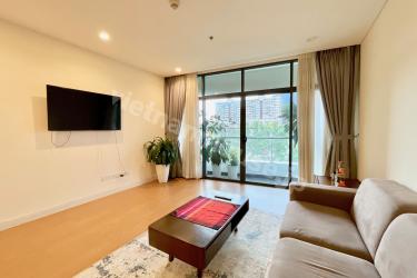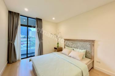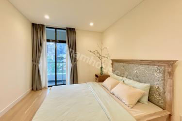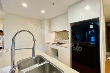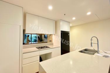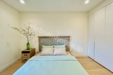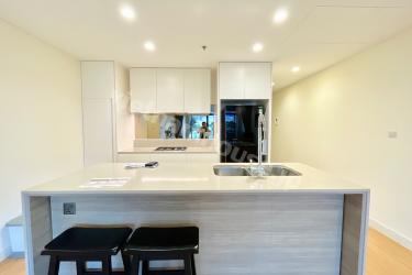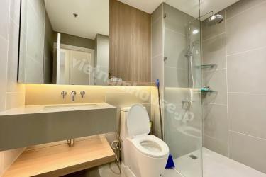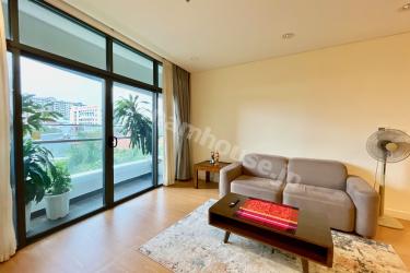 This is a 1-bedroom apartment at City Garden, featuring a minimalist design with a predominantly white color scheme. The kitchen and living room are spacious and airy, providing a comfortable atmosphere. Warm wood grain flooring and furniture add a cozy and relaxing touch to the living space.