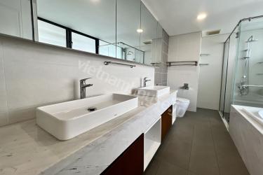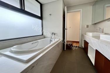 Located in the heart of Phu My Hung, this unit offers convenient access to Ho Chi Minh City’s center in just about 30 minutes by car, surrounded by countless amenities such as Crescent Mall, SC VivoCity, supermarkets, restaurants, and riverside parks. This spacious 3-bedroom apartment features elegant design, premium furnishings, and warm wooden flooring in the living room. The master bedroom opens to a private balcony, welcoming fresh river breezes and abundant natural light. The bathroom is equipped with a relaxing bathtub.