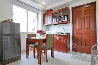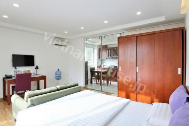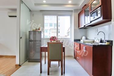 Conveniently located on quiet street district 1, the commercial and bussiness district. All apartments in this serviced apartment are fitted with all modern conveniences and furniture. Especially, Coherent light and light color furniture set off the room. This is a best choice for take rest after working day.