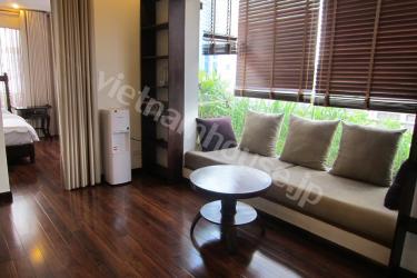 A spacious service apartment with vintage interior design and great location is available now! You can definitely enjoy every moment of Vietnam while staying her. The bedroom and living are furnished with glass window, making your room filled with natural light. Feel free to contact us to schedule a viewing for this great apartment