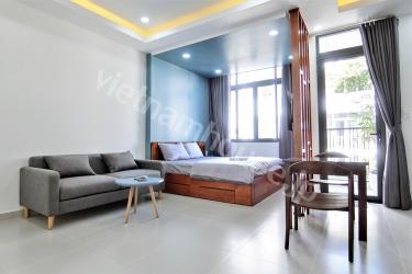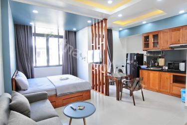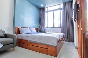 This neat studio apartment is located just a few steps from An Phu Market and provides great security and privacy. It has also been freshly painted inside. Enter into a spacious living space with air conditioning and great interior. The kitchen is located at the side and the bathroom has separate shower. Contact us for more information.