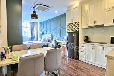Located right near the central roads of District 3, the convenience that this serviced apartment brings is indisputable when being able to reach other districts in just a few minutes. The design of a European-style apartment makes everything more modern and brighter, along with a completely new interior chosen by the owner. Please call us about this apartment.