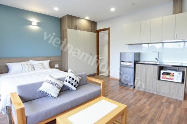 Wonderful Nhieu Loc canal view when you standing at balcony at this apartment, near Thao Cam Vien zoo, just 5 minutes to Japanese Town. Cleaning, comfortable with studio apartment wooden floor will bring feeling cozy in raining season and cool in dry season in Ho Chi Minh city. Call us for rent this apartment!