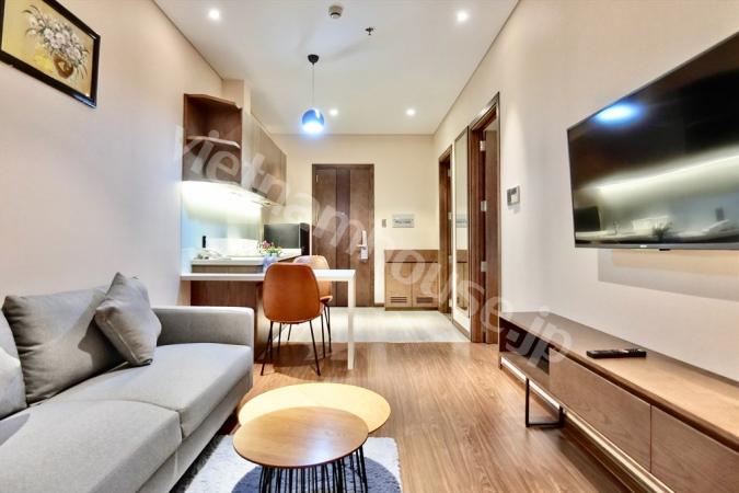 Modern 1 bedroom fully furnished apartment in District 1 features open plan living space, stylish kitchen, video monitored intercom system, security entrance and city views. District 1 is a very popul...