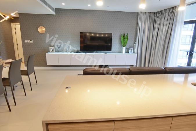 ホーチミン市1区の中心にある高級レジデンス「Vinhomes Golden River」の広々とした3ベッドルーム物件。都市部にありながら静かで、サイゴン川やBitexcoタワーを望む絶景を楽しめます。